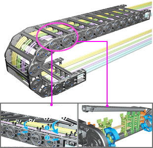 겐츄리로봇, 공작기계, 용접기계, 인쇄기계, 로봇케리지 등 케이블체인의 적용사업장에 사용가능.