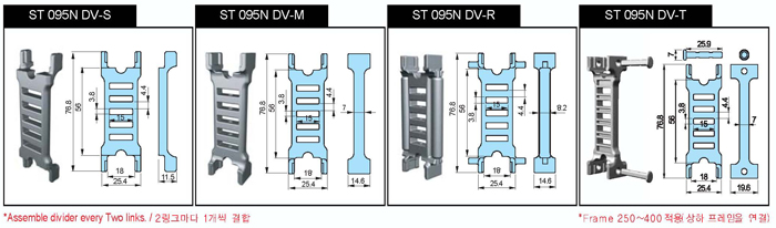 또한 케이블을 체인내 2단이상 입선시 반드시 세퍼레이터를 디바이더에 결합하여 사용해야 케이블의 꼬임방지와 피복손상을 방지할 수 있습니다.